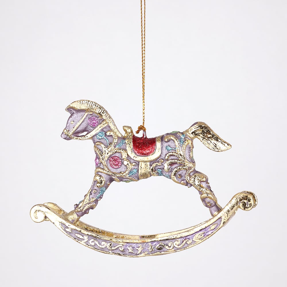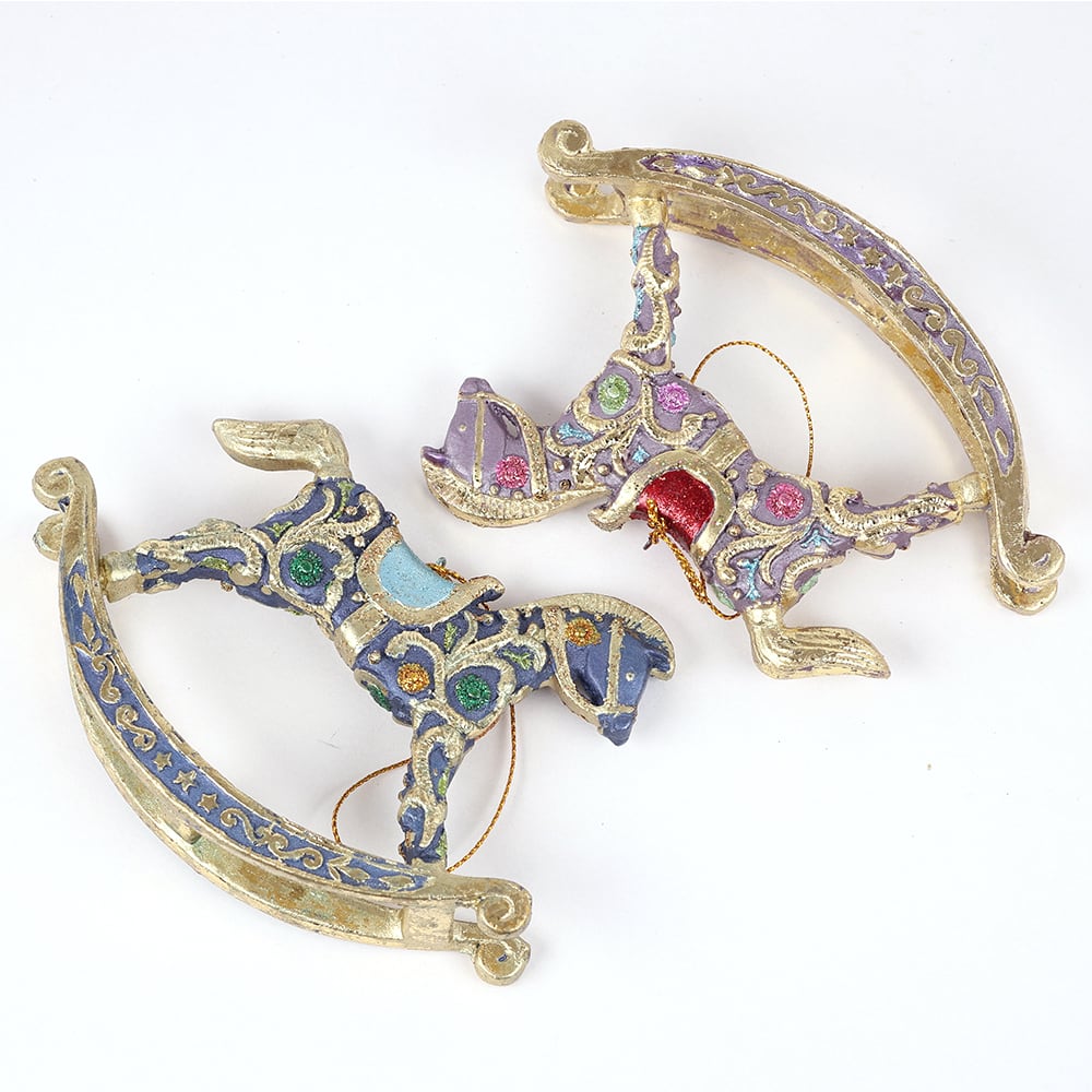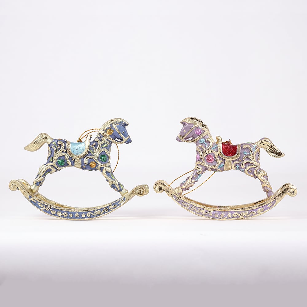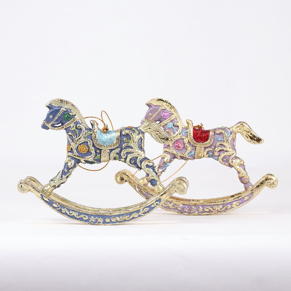 ロッキングホースのクリスマスオーナメント(パープル/ブルー) (8683)