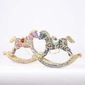 ブルーとパープルのエキゾチックな柄のロッキングホースのオーナメント。