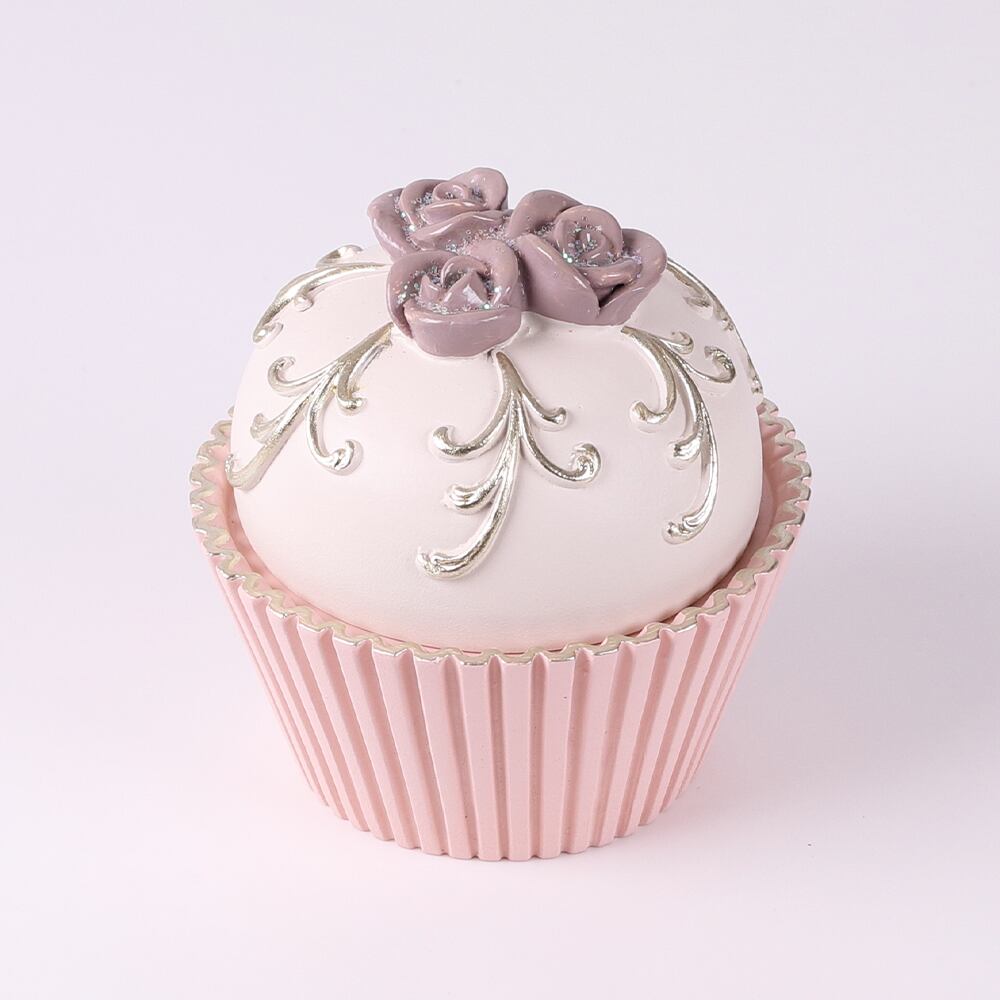 バラとゴールドの装飾がエレガントなカップケーキ型小物入れ