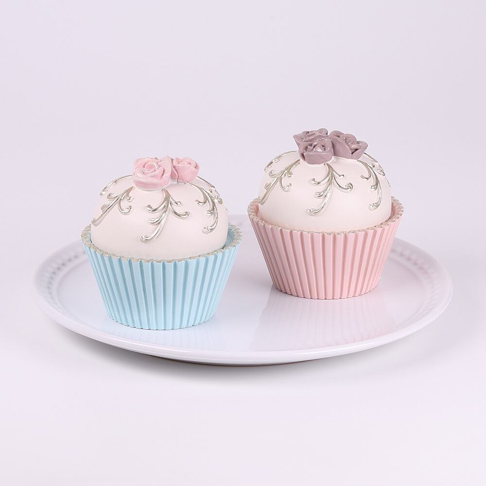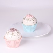華やかなパステルピンクとブルーのカップケーキで、上から見ても横から見てもキュートなデザインです。