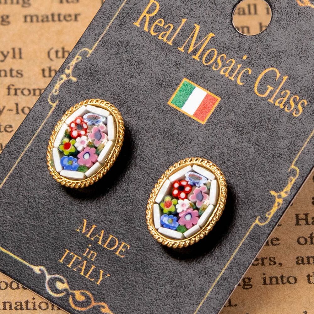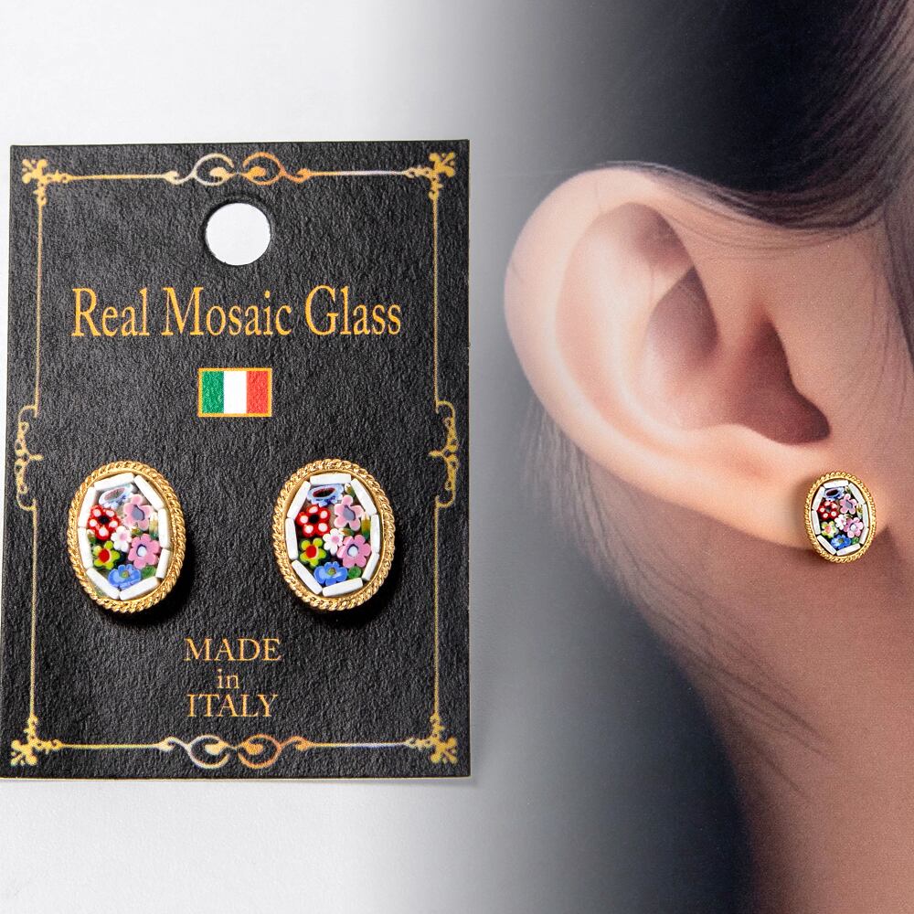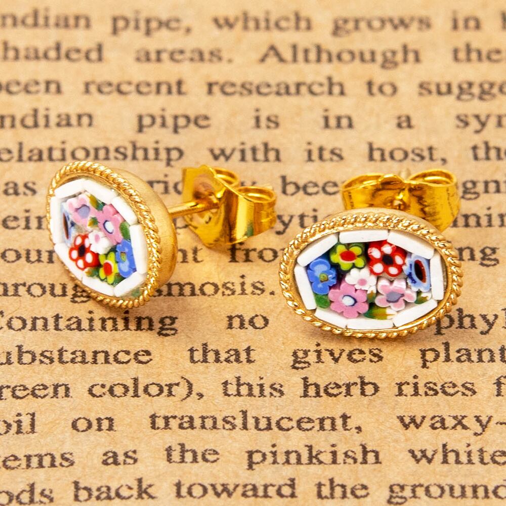 イタリア・フィレンツェの伝統技法ガラスモザイクで作られたポストタイプのミニピアス。