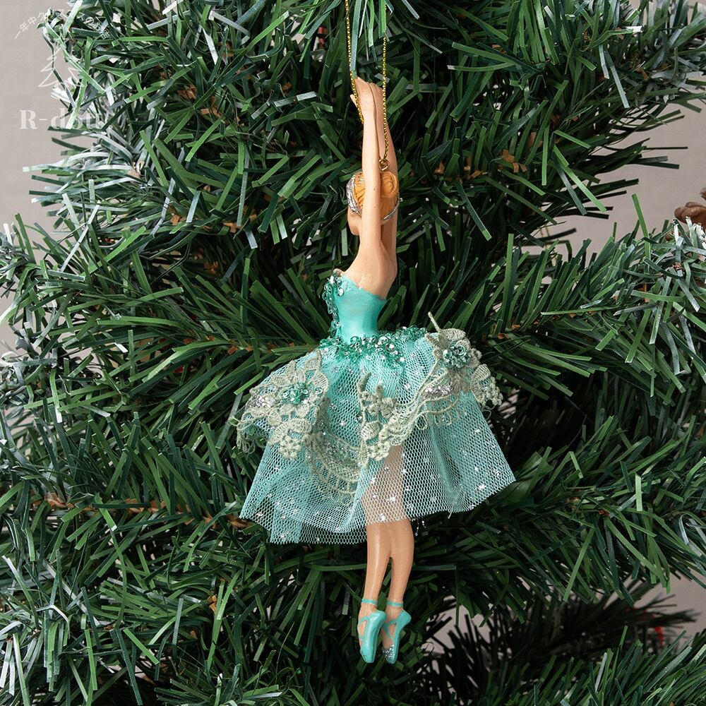ブルーグリーンカラーのチュールレースのチュチュを着たバレリーナのクリスマスツリーオーナメント。