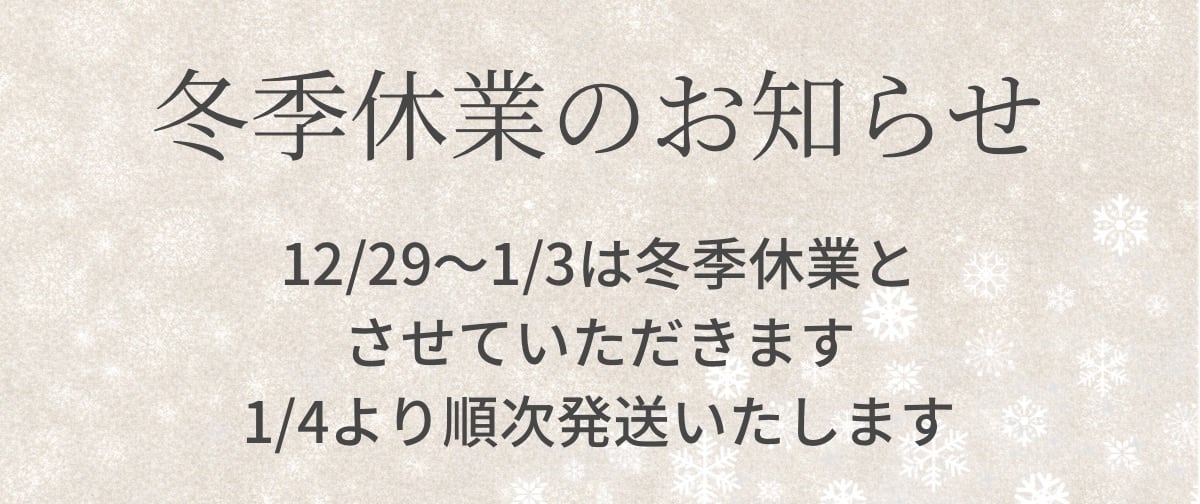 現在、運送会社による荷物の増加・降雪などの影響により、一部地域でお届けに遅れが生じる場合がございます。