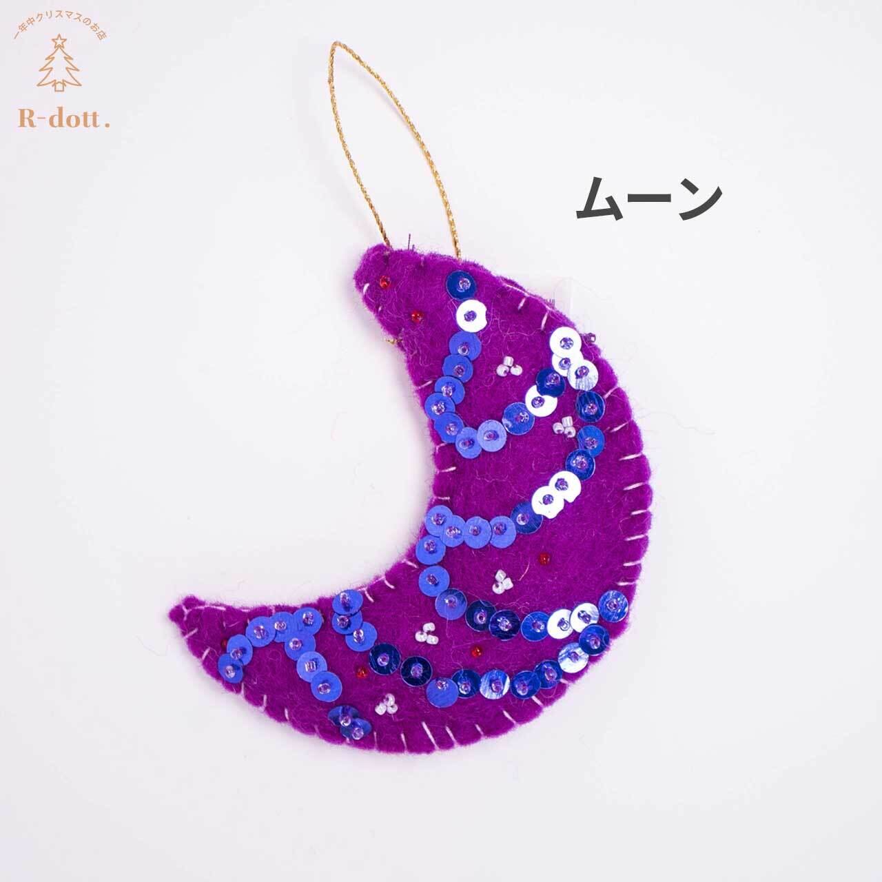ほっこりと温かみのある羊毛フェルトに、キラキラのビーズをほどこしたクリスマスオーナメント。